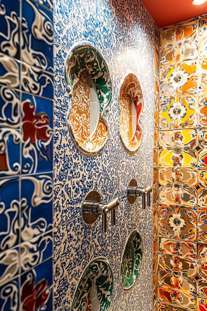 Add decorative trims or contrasting grout to emphasize the pattern. Incorporate lighting fixtures that cast shadows to enhance textures or patterns. Personalize with accessories that echo the motif or color scheme. You can also add a matching decorative border or niche to complement the accent wall.