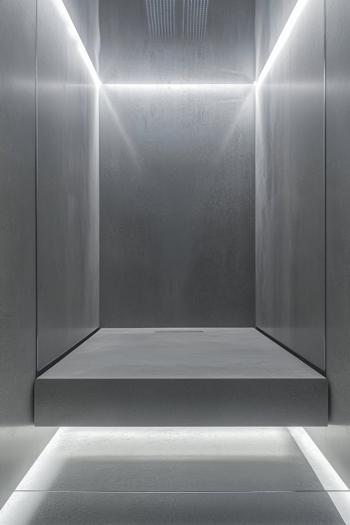 5. Floating Shower Walls with Hidden Mounting