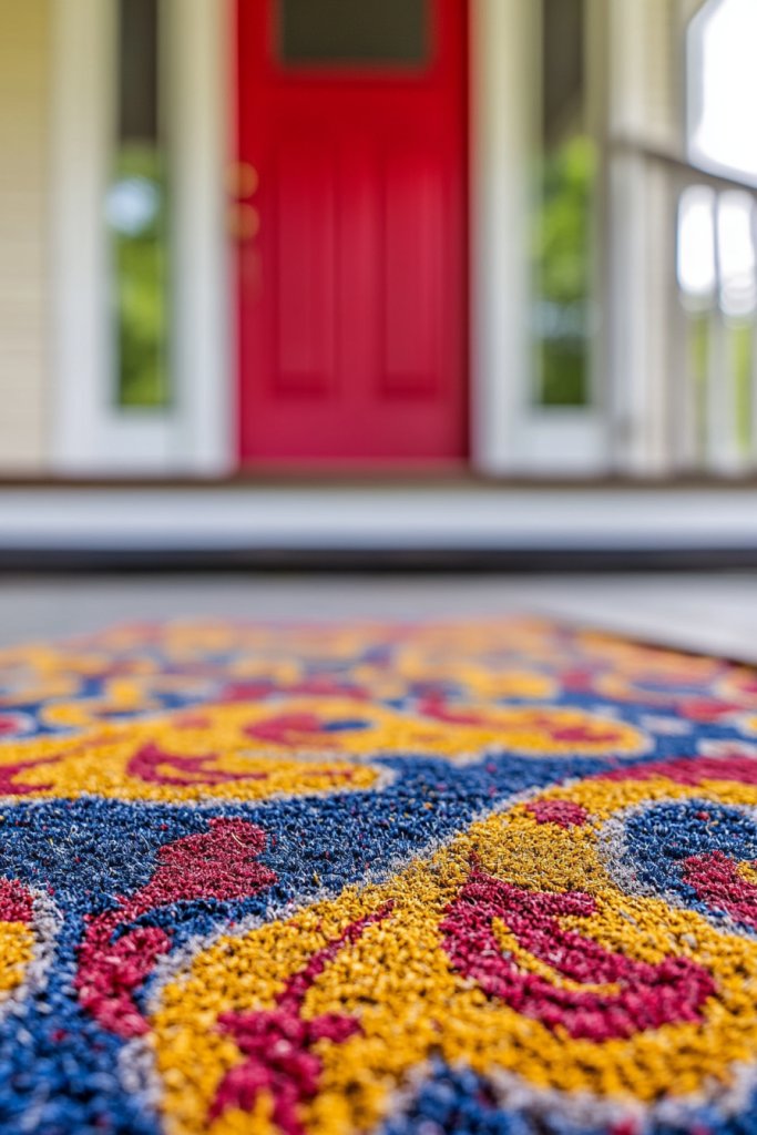 Picture a vibrant, patterned doormat with cheerful yellows and blues, or maybe something personalized with your family’s name. Imagine textured fibers that feel soft underfoot and bold prints that catch the eye. When you stand on it, you sense a lively, friendly energy that sets the tone for your entire porch. It’s like a mini piece of art right at your doorstep.