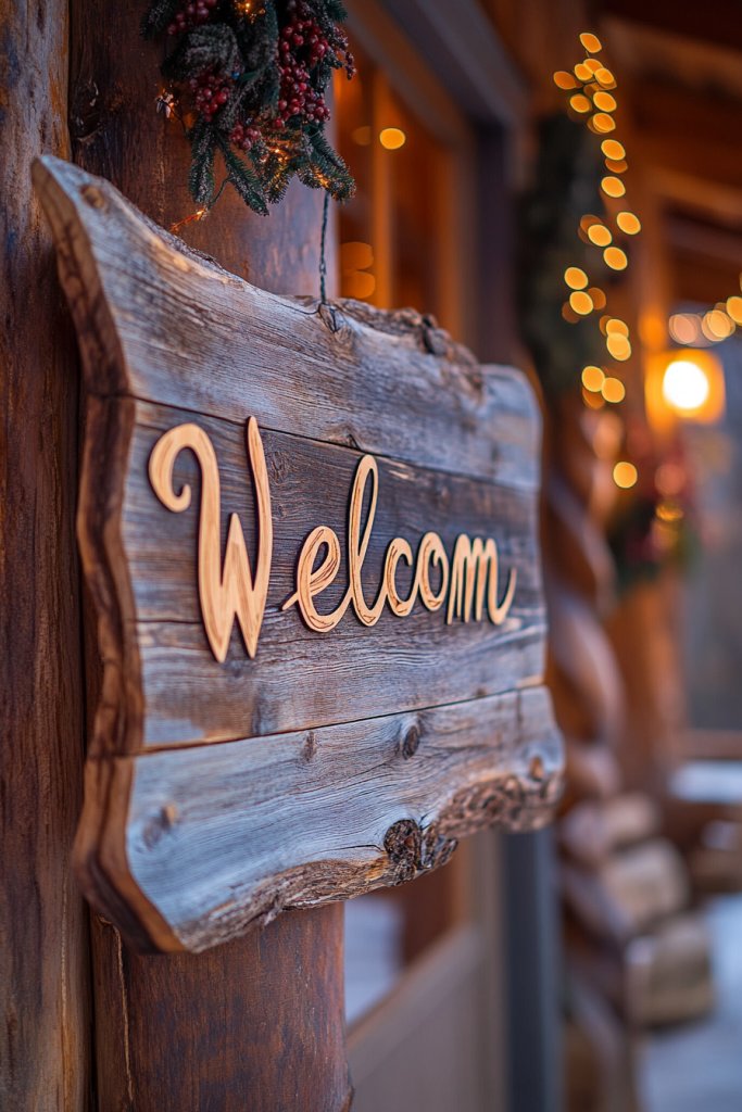 4. Rustic Wooden Porch Signs with Warm Greetings