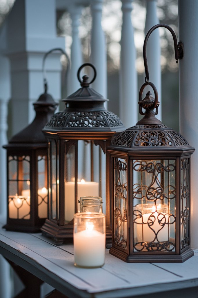 Opt for vintage metal lanterns for a traditional look or sleek glass and stainless steel for a modern vibe. Use flameless LED candles for safety or real candles for authenticity—just remember to never leave them unattended. Group multiple lanterns for a layered, dramatic effect or place a single statement piece as a focal point. Seasonal accents, like pinecones or mini pumpkins, can be added for holidays.