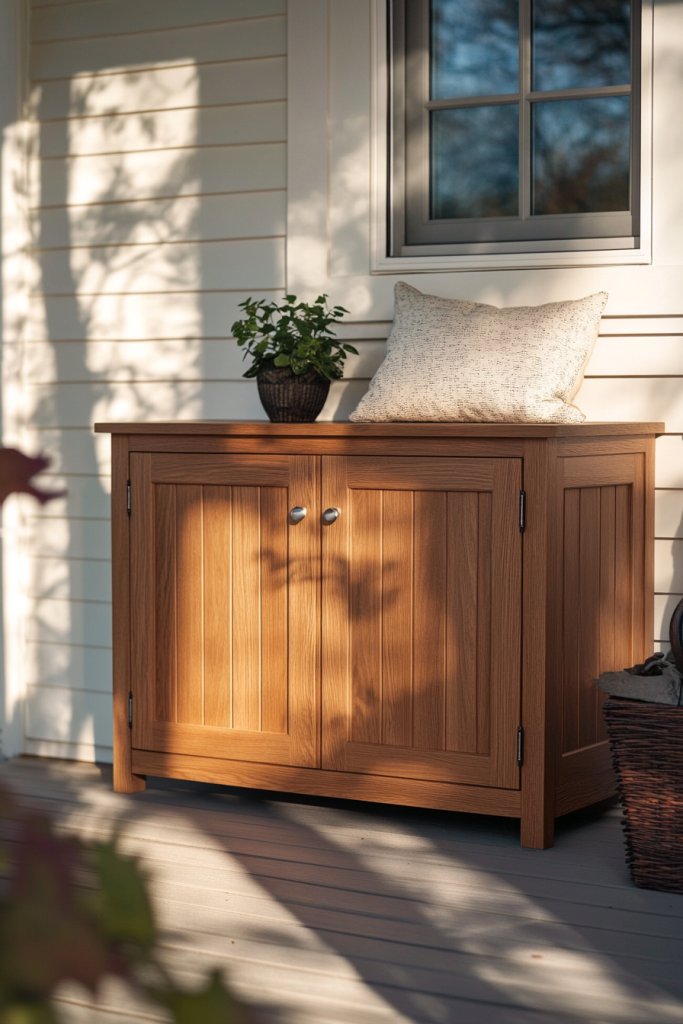 Choose open racks for easy access or closed cabinets for a cleaner look. Use woven baskets or decorative bins for a casual, eclectic vibe. Slim, vertical storage units save space in narrow porches, while larger benches with hidden compartments offer extra seating. Match your storage with your overall porch style—rustic, modern, or vintage.