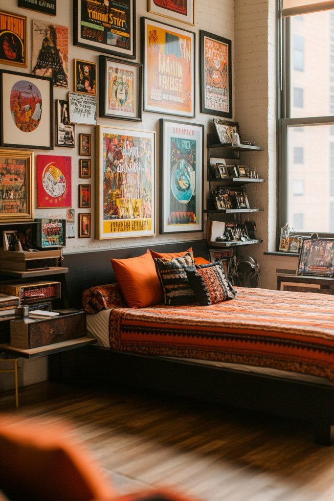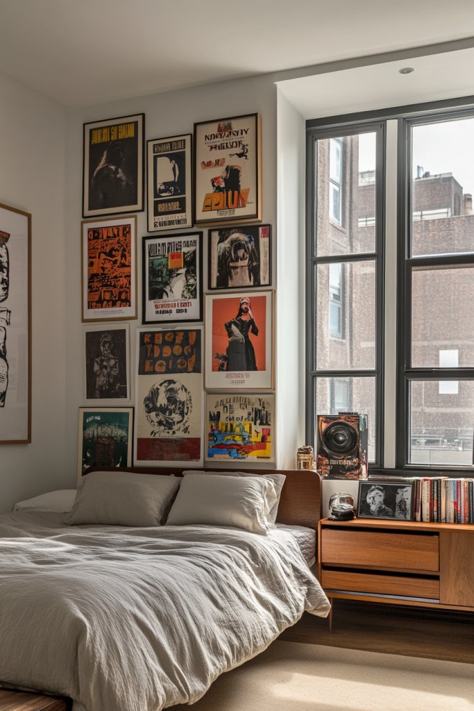 Ever wish your bedroom told a story or reflected your passions? A themed poster collage allows you to showcase your personality through a curated mix of images and motifs. It’s a fun, personalized way to fill your walls with meaning, color, and style. Plus, it’s endlessly customizable and adaptable to your evolving tastes.
