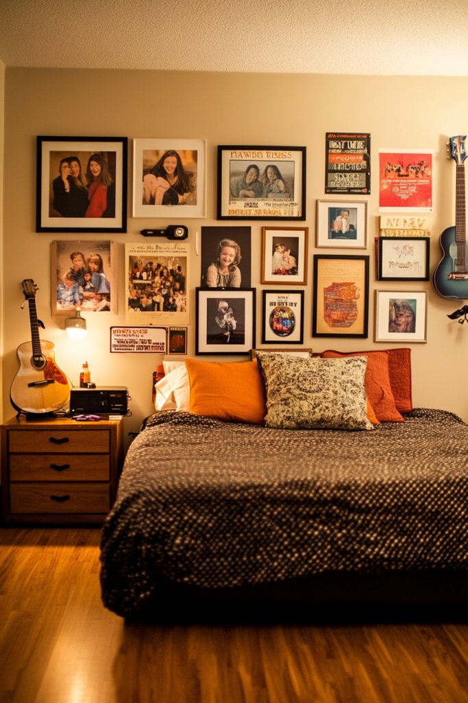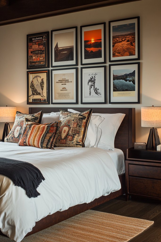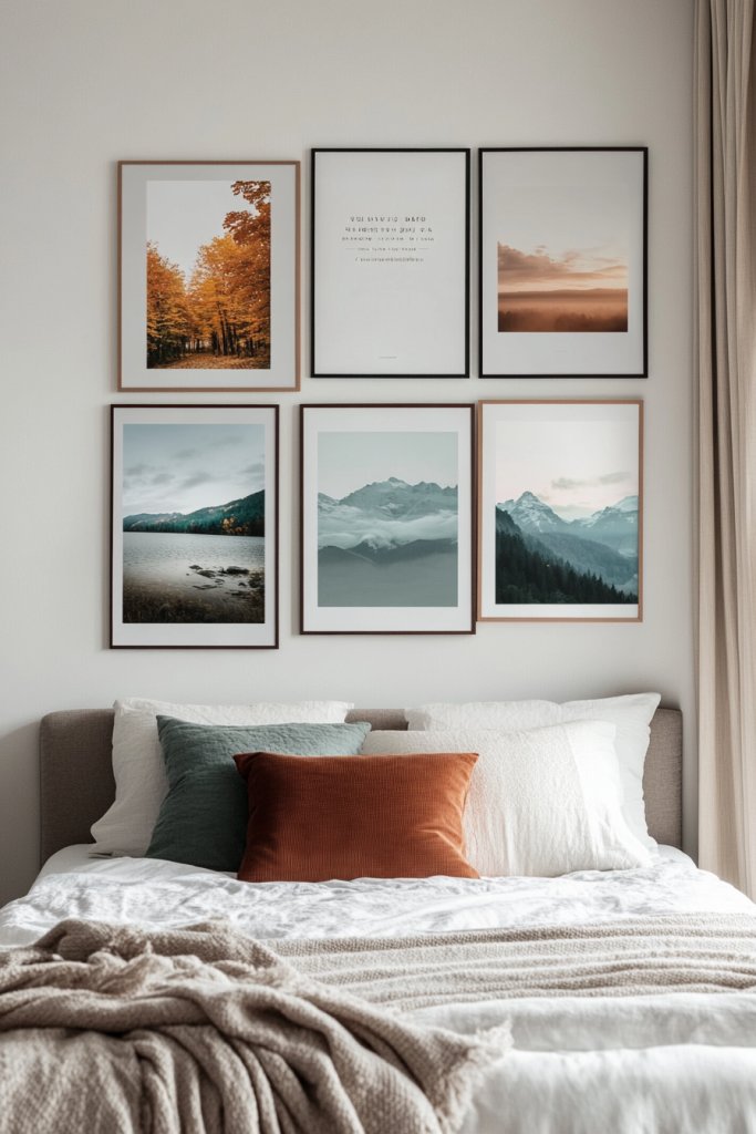 A gallery wall transforms your bedroom into a creative haven. It shows that decorating can be fun and flexible, giving you confidence to experiment. Your friends will be impressed by your personal, artful display. Ready to turn your blank walls into a captivating showcase?