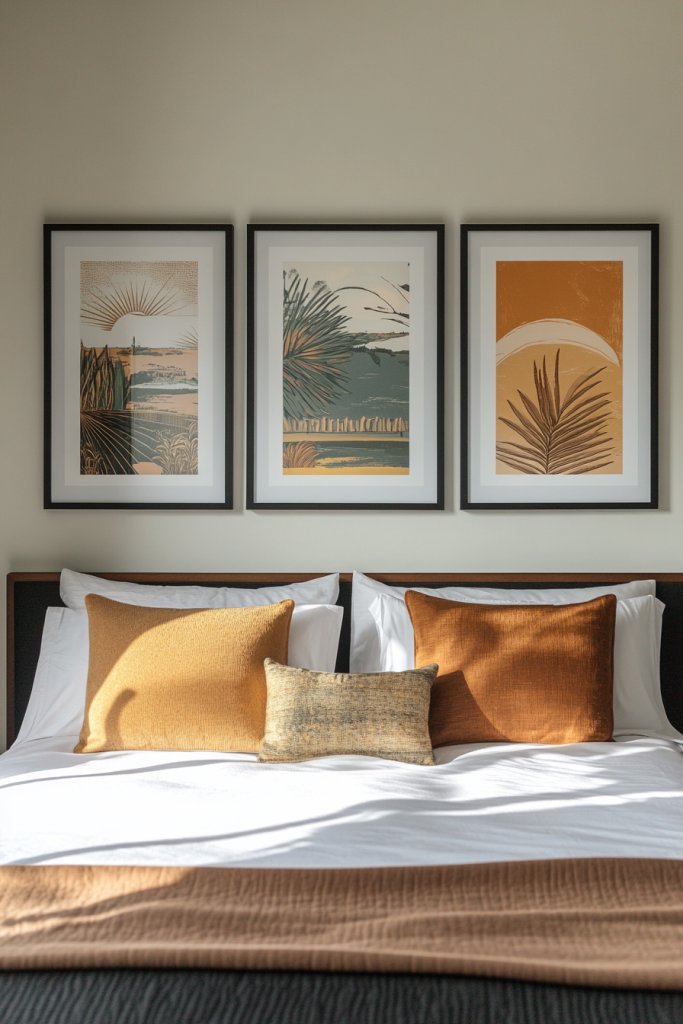 A triptych creates a polished, artistic vibe that instantly upgrades your space. It shows you can achieve a gallery-quality look with simple, coordinated pieces. Once you see this effect, you’ll feel more confident experimenting with other curated displays. Your room will feel more intentional and artful.