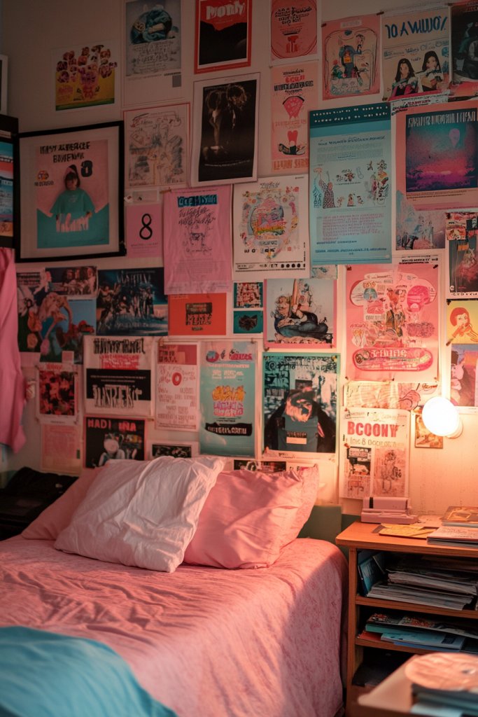 You can focus on your favorite colors—pastel pinks and blues for a soft, calming effect or bold reds and blacks for drama. Seasonal themes work well, so swap out posters as your mood or interests change. For a minimal approach, choose a few large posters; for maximal impact, go for a dense collage. Incorporate patterns, quotes, or small illustrations to enhance the theme.
