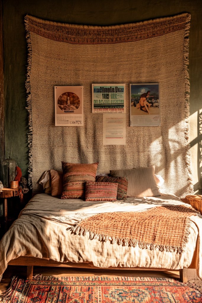 9. Mix Poster Art with Textile Elements Like Fabric or Tapestries