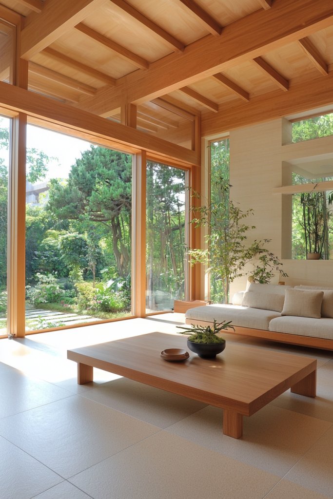 In a minimalist Zen retreat, open spaces, natural materials, and neutral color palettes are key components. Consider large windows to invite sunlight and offer views of the surrounding landscape.