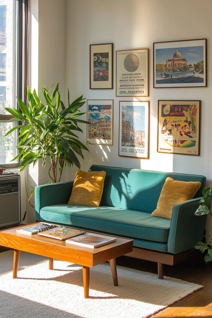 • Curate a gallery wall featuring retro art, vintage travel posters, and personal mementos to evoke nostalgia and showcase your style.