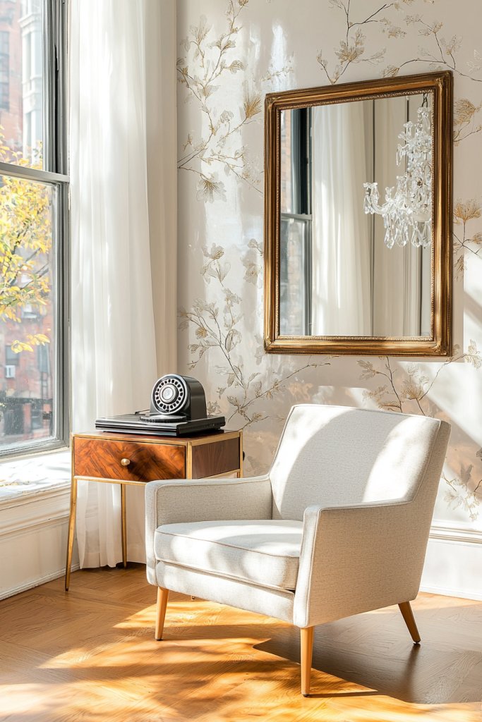 Positioning a vintage mirror opposite a window can amplify natural light, making your room feel larger and more open. You might opt for a variety of styles—perhaps a gilded baroque piece or a rustic farmhouse design—to complement your existing decor.