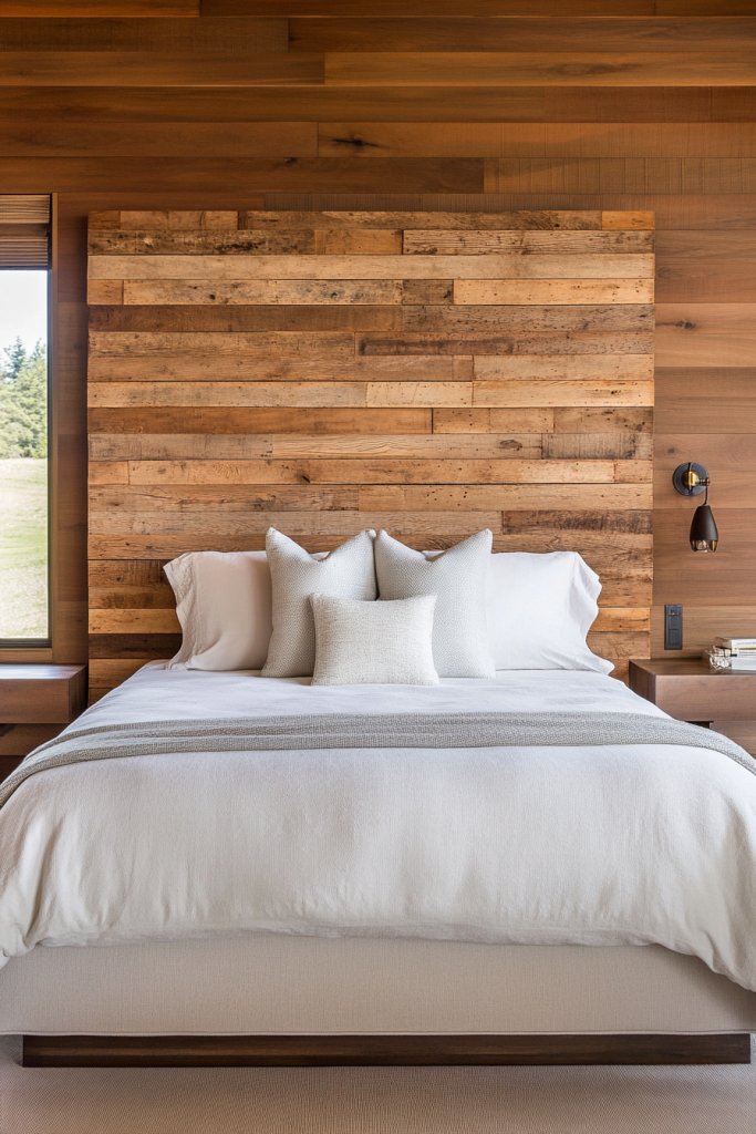 Imagine a wall covered in rich wood panels, soft fabric textures, or 3D geometric tiles that catch the light and create shadows. The tactile surface invites touch and adds dimension, making the room feel layered and curated. The panels can frame your bed or serve as a focal point behind it, anchoring the entire space with visual impact. The combination of materials and patterns offers a sophisticated, modern look.
