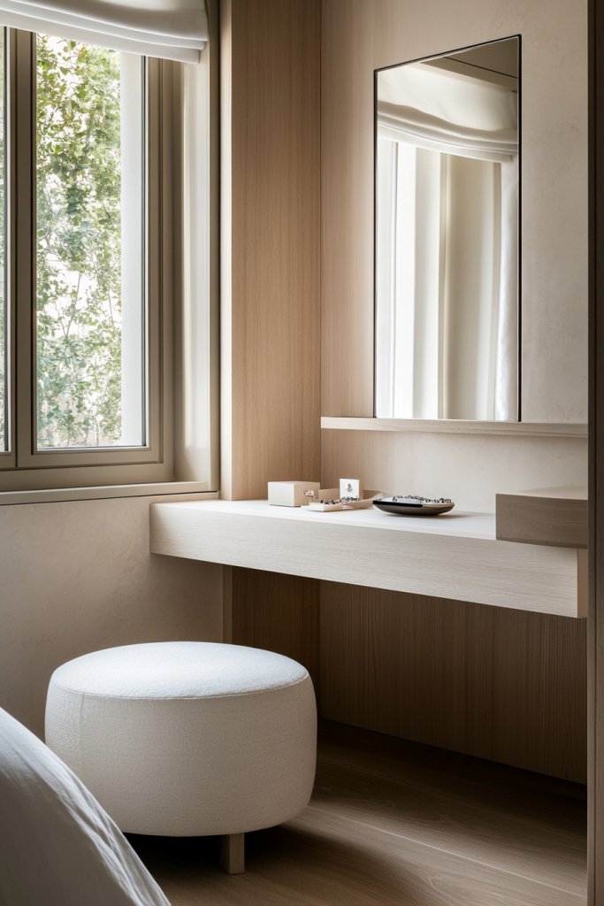 Choose a compact table or repurpose a vintage desk for a personalized look. Use a large wall-mounted mirror for a minimalist setup or an ornate framed mirror for a romantic vibe. Decorate with stylish containers, trays, and organizers that match your decor theme. For small rooms, a fold-down wall unit or corner setup maximizes space. Change accessories seasonally for fresh appeal.