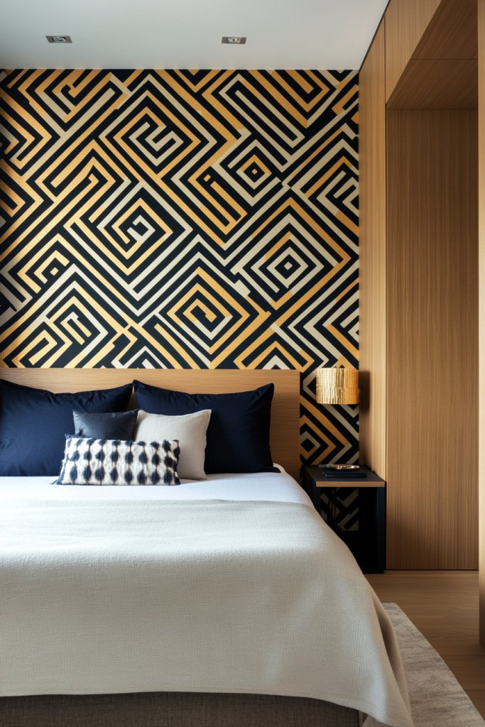 15. Use Geometric or Modern Patterned Wallpaper for Visual Interest