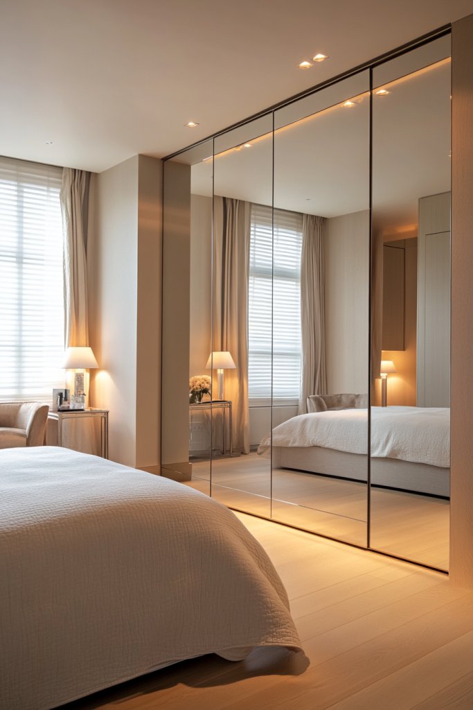 Mirrored furniture is a stylish, practical way to expand your room visually. It boosts your confidence in mixing textures and playing with light to elevate your decor. Once you see how much larger and brighter your bedroom feels, you’ll be motivated to incorporate more reflective surfaces—your space will feel like a luxurious retreat.