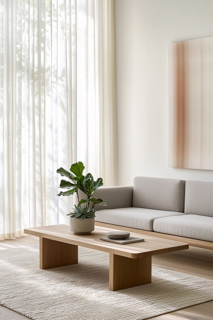 After introducing lively plants into your space, embracing a minimalist design can elevate that invigorating atmosphere even further. Picture a serene canvas of soft whites and earthy tones, where every element serves a purpose.