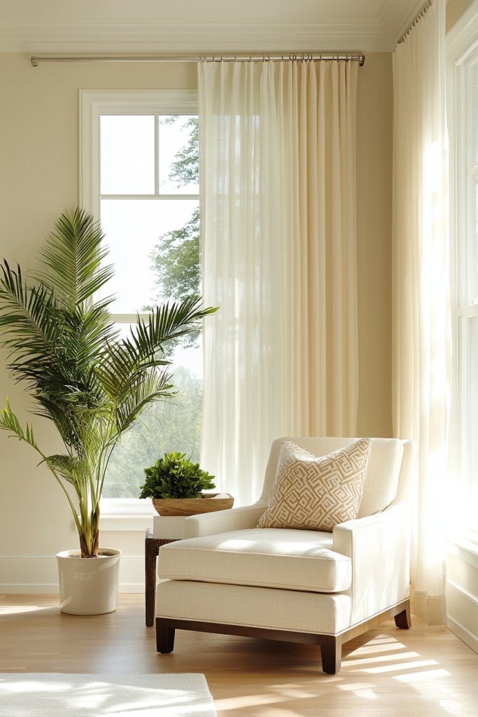 Invigorating window treatments can elevate your room’s ambiance and enhance the zones you’ve created. Consider light, airy fabrics like sheer linen or cotton to invite natural light while maintaining privacy.