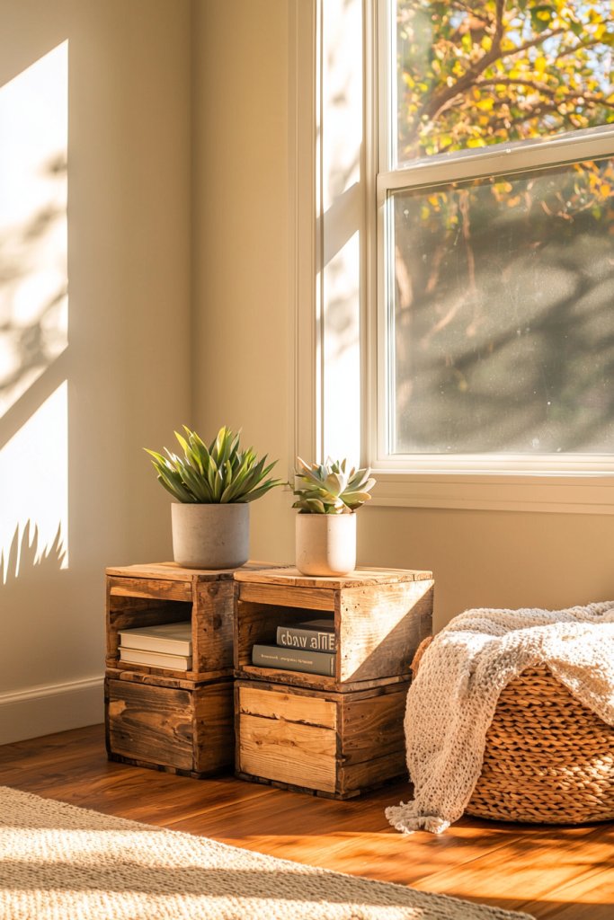You might also consider using crates as a base for a coffee table; simply add a glass top for a chic finish. With their rustic charm and endless possibilities, upcycled wooden crates are perfect for infusing your home with warmth and creativity.