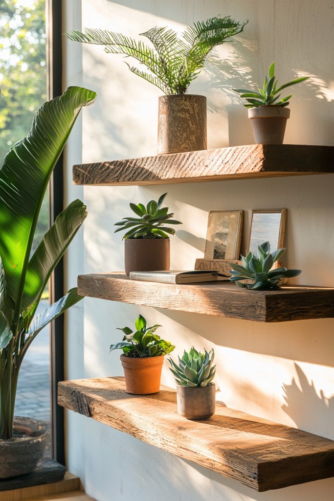 These shelves aren’t just functional; they’re a canvas for your creativity. You can display cherished books, vibrant plants, or handmade ceramics, adding a personal touch to your space.