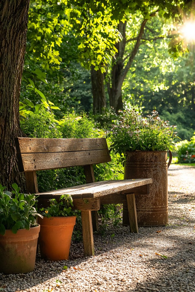 Stone pathways, either large slabs or small pebbles, can create a natural flow throughout your garden while inviting exploration. Consider adding vintage garden tools, like an old watering can or trowel, as decorative accents.