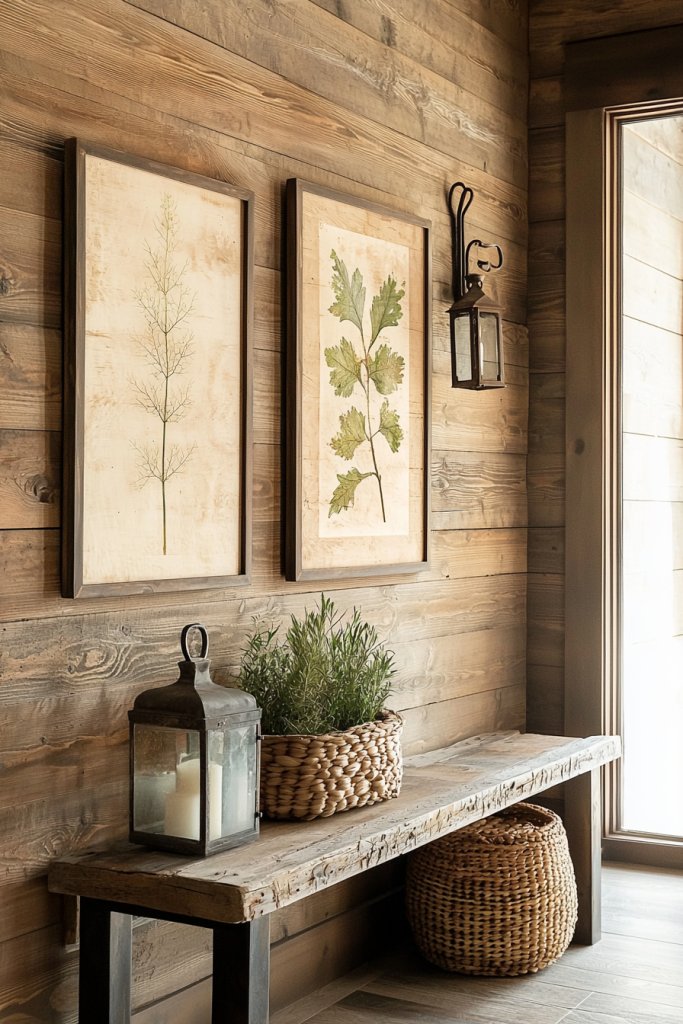 - Adorn walls with rustic art, utilizing reclaimed wood frames and metal signs to create a warm, layered atmosphere.