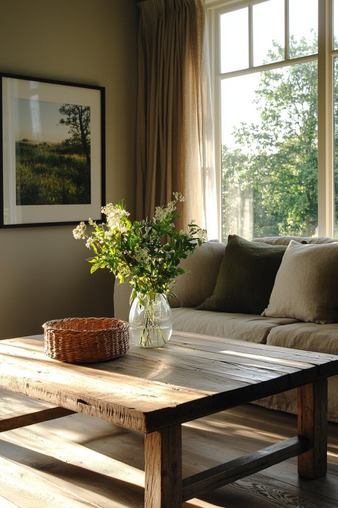 A jute or braided rug underfoot adds texture, grounding the space while enhancing the rustic feel. Don’t forget the decor! Incorporate rustic elements like mason jars filled with wildflowers or antique pottery to add character and warmth.