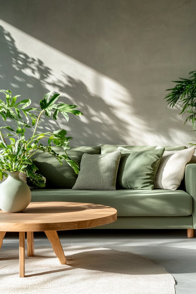 Picture sinking into your couch, surrounded by plush sage green cushions that radiate calmness and comfort. Consider mixing textures—velvet, linen, or knitted fabrics—to add depth and interest.