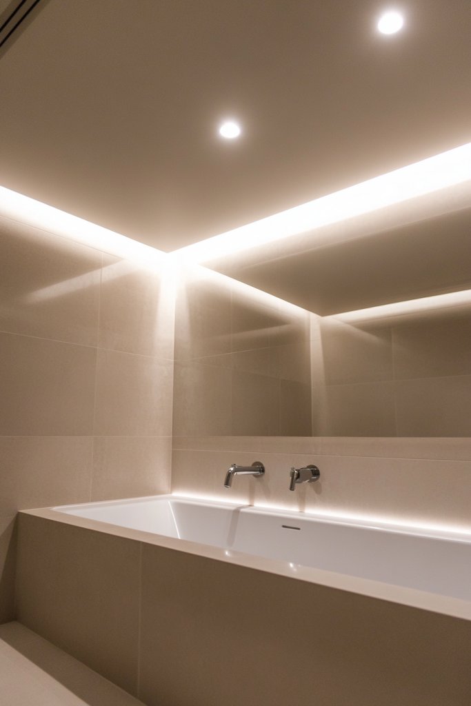 Identify key areas that benefit from soft lighting—above mirrors, in niches, or along the ceiling perimeter. Work with an electrician to install high-quality, dimmable LED fixtures in recessed housings. Use a compatible dimmer switch for adjustable ambiance. Ensure wiring is concealed for a clean look. Test the lights for even coverage and make adjustments as needed. Regularly clean the fixtures to prevent dust build-up and maintain efficiency.