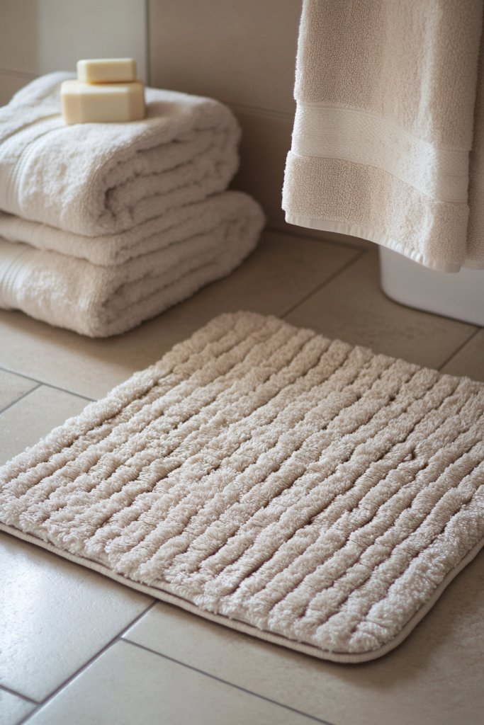 13. Textured Bath Mats and Towels in Neutral Hues