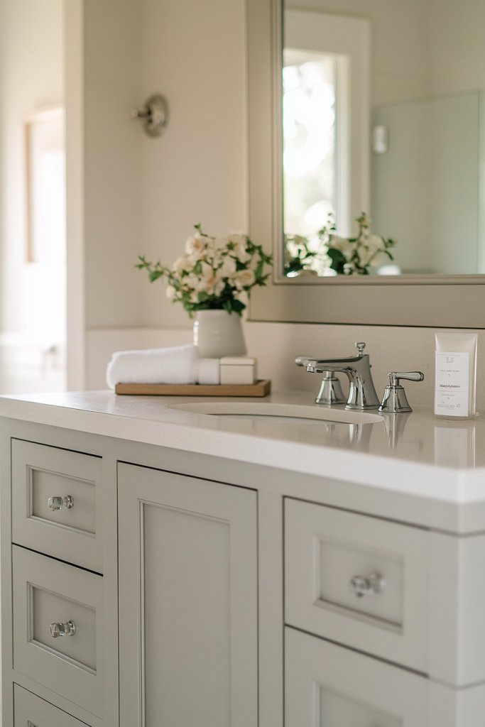 A clutter-free countertop sets the tone for a calm, organized bathroom environment. It’s a visual reminder to keep things simple and intentional. Once you master this, maintaining your space becomes effortless, and your daily routines more peaceful. It’s proof that minimalism isn’t about deprivation but about creating space for what truly matters. Enjoy the serenity of your beautifully organized bathroom.