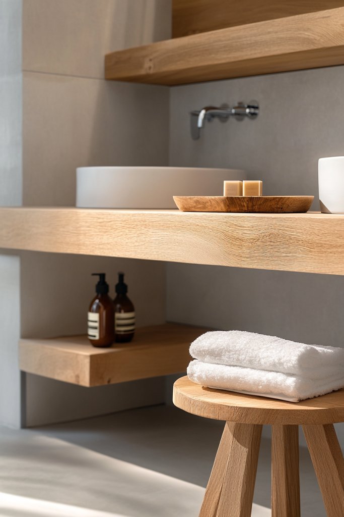 Feeling like your bathroom lacks warmth or personality? Incorporating natural wood accents can instantly soften the starkness of minimalist decor. It adds a cozy, inviting vibe without sacrificing modern elegance. Plus, wood’s natural textures bring a tactile element that makes the space feel more alive. Who doesn’t want a bathroom that feels both fresh and homey?