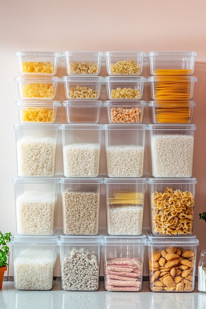 1. Use Clear Stackable Containers for Pantry Staples
