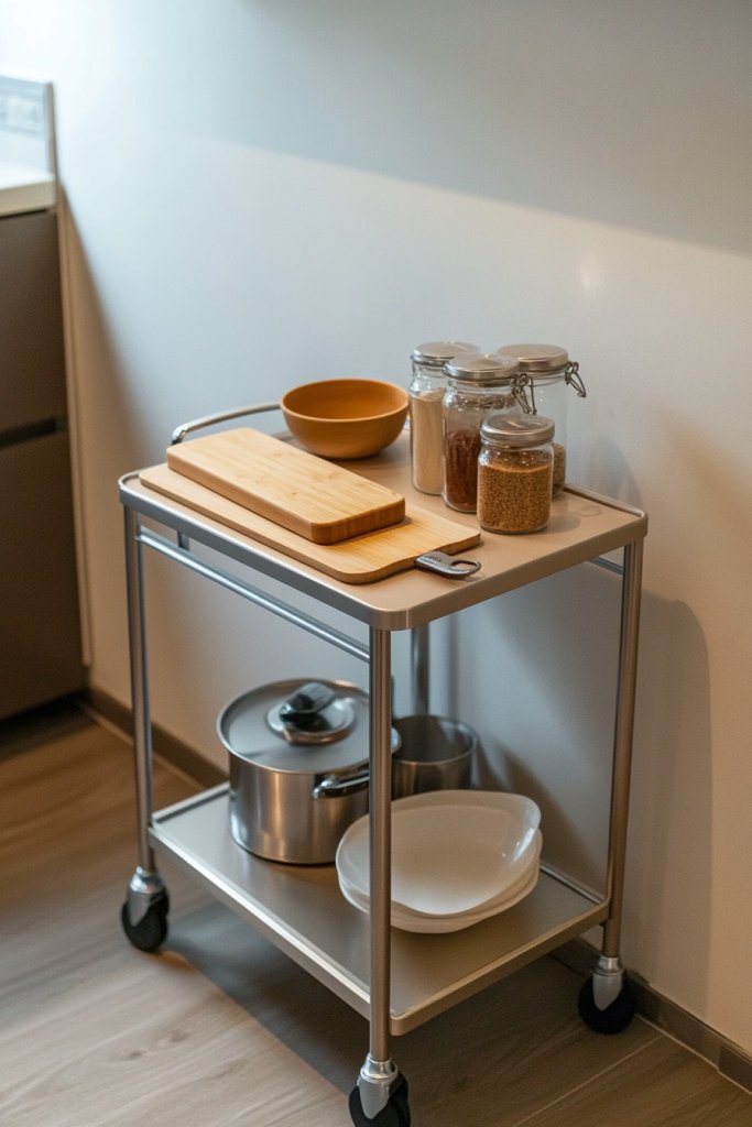15. Incorporate a Rolling Cart for Extra Counter or Storage Space
