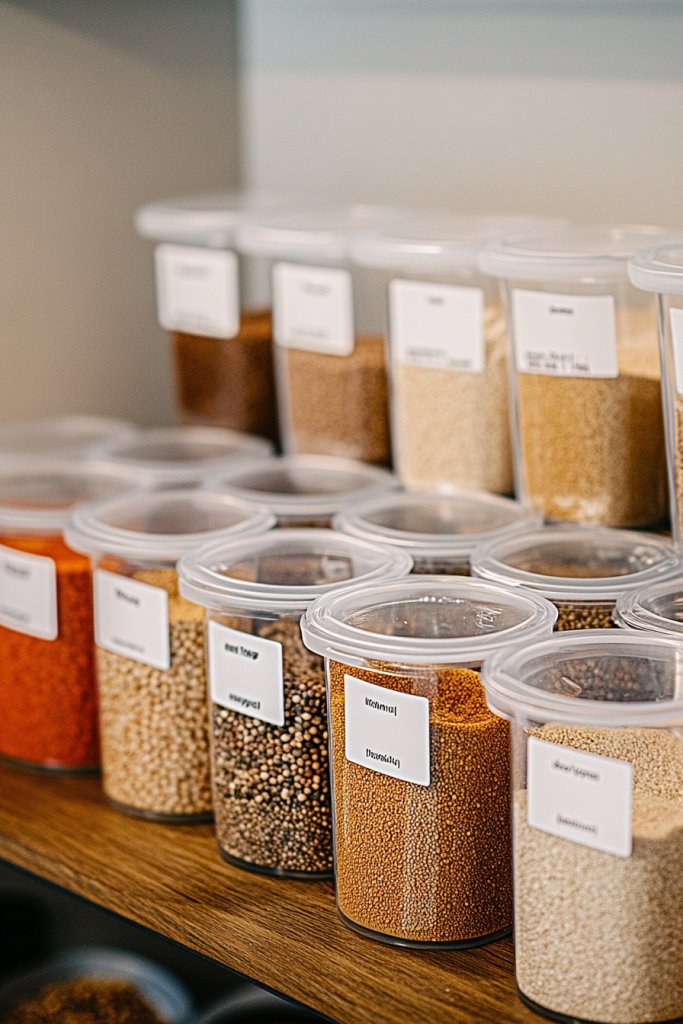 Start by measuring your pantry shelves and selecting containers that fit snugly without wasting space. Look for airtight seals and stackable designs to promote stability. Label each container with a label maker or chalkboard sticker for quick identification. Wash and dry containers thoroughly before filling to prevent mold or odors. Place the most-used items at eye level for easy access, and store less frequently used staples on higher or lower shelves.