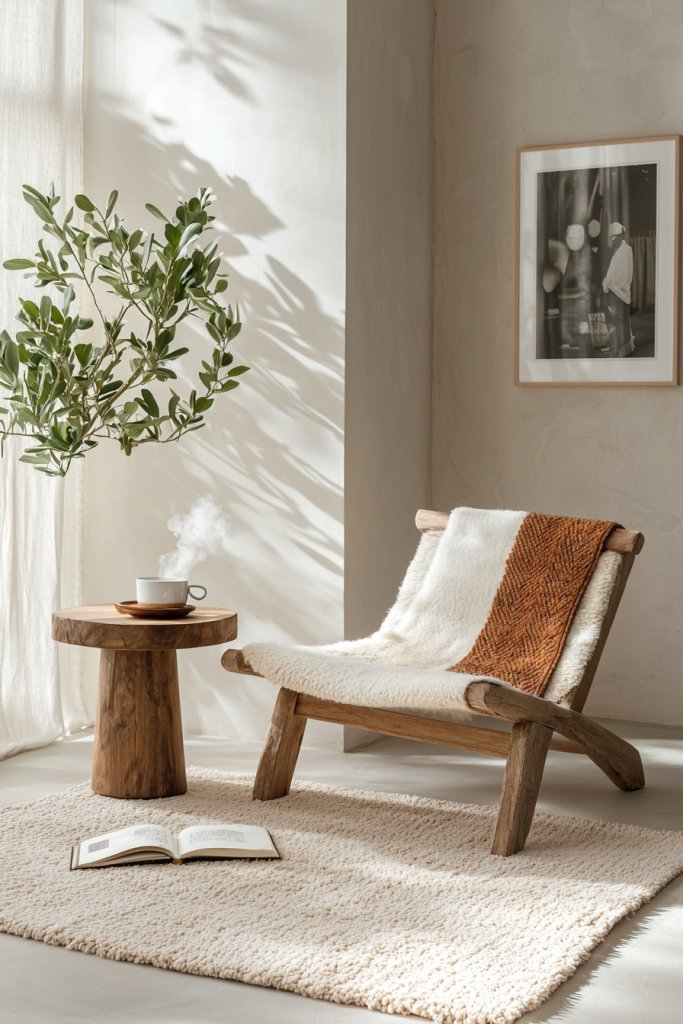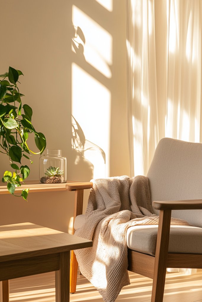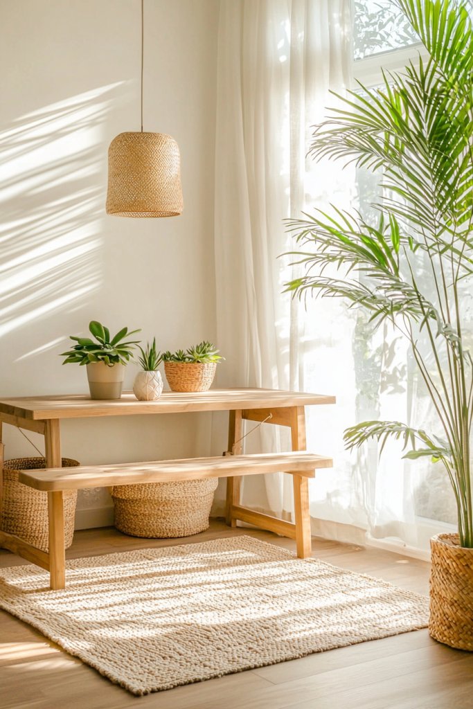 A reclaimed wood coffee table or a cozy jute rug can create warmth and invite tactile experiences. As sunlight filters through sheer curtains, it dances on the surfaces, casting gentle shadows that evoke tranquility.