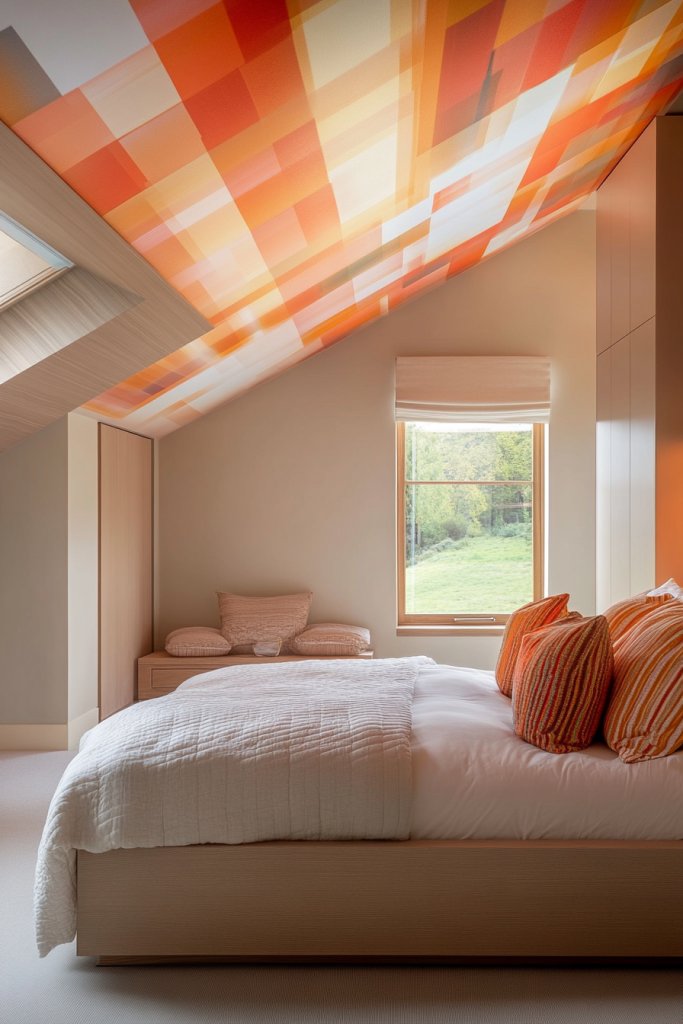 Imagine a ceiling painted in a vibrant hue—deep teal, sunset orange, or emerald green—that contrasts beautifully with neutral walls. Alternatively, patterned wallpaper with geometric or floral designs adds visual interest and texture. When paired with subtle lighting, the ceiling becomes a captivating feature that draws the eye upward. It’s a stylish, unconventional approach that elevates your entire room.
