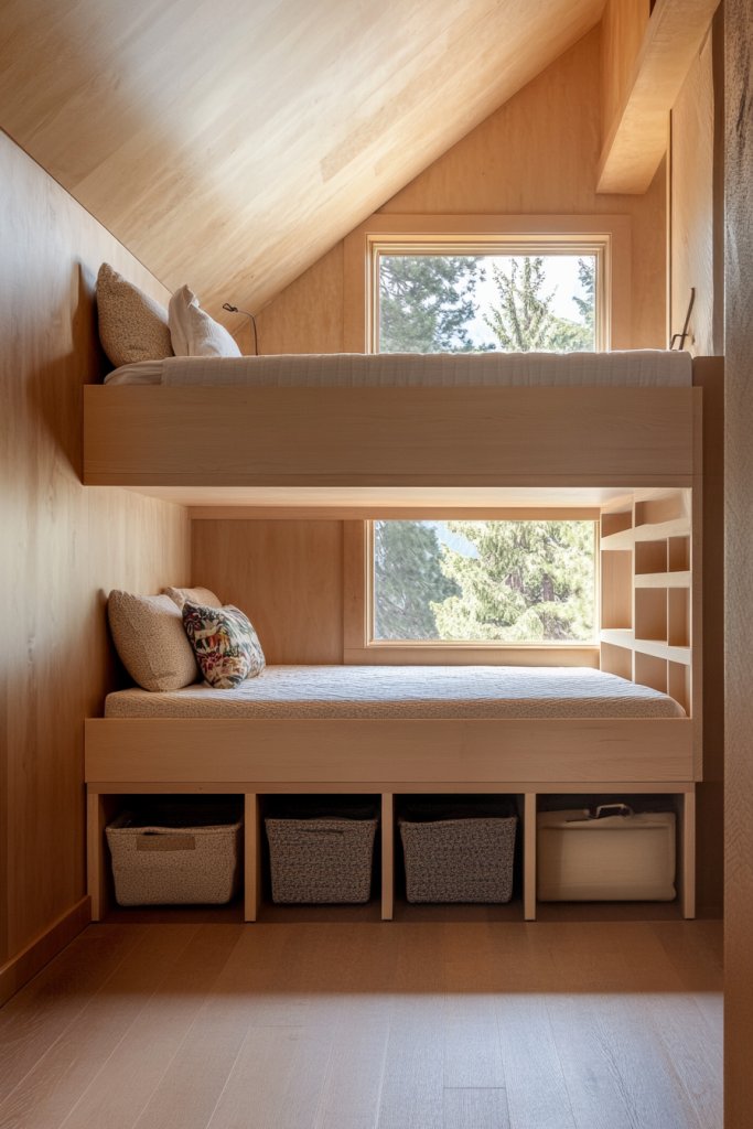 Struggling with limited space and craving a bedroom that feels open yet functional? A lofted bed is your answer—raising your sleeping area to free up valuable real estate below. It’s perfect for small rooms, especially with slanted ceilings where traditional beds just don’t fit. Want a clutter-free, airy space? This idea is your new best friend.