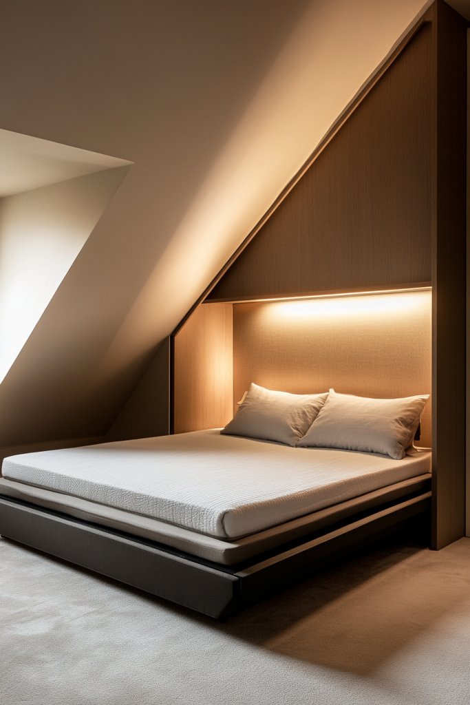 Feeling overwhelmed by clutter and cramped spaces? A wall-mounted bed could be your sleek, space-saving hero—especially with slanted ceilings where traditional beds dominate. It offers a clean, modern aesthetic that makes rooms appear larger and less busy. If you crave simplicity and elegance, this idea is calling your name.