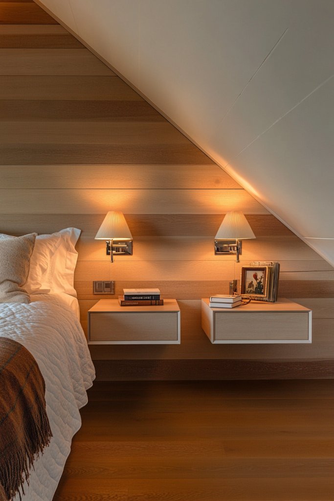 Cluttered nightstands can make even the prettiest bedrooms feel cramped and chaotic. If your space is limited by sloped ceilings, floating nightstands are a game-changer—keeping surfaces clear and the floor feeling open. They add a modern touch while maximizing functionality. Want a sleek, clutter-free look? Here’s your solution.