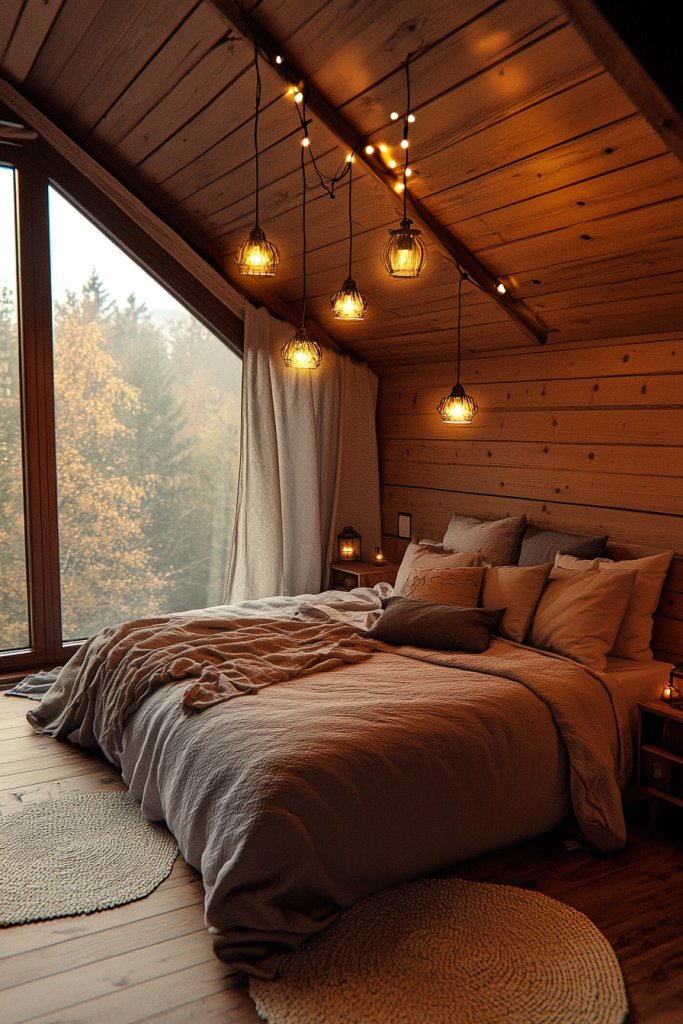 Ever felt your bedroom lighting was dull or uninspiring? Pendant lights and string lights offer a cozy, warm glow that instantly transforms the atmosphere. Especially with sloped ceilings, hanging fixtures add visual interest and height without cluttering the space. Want a room that feels inviting and stylish? This lighting trick is your new best friend.