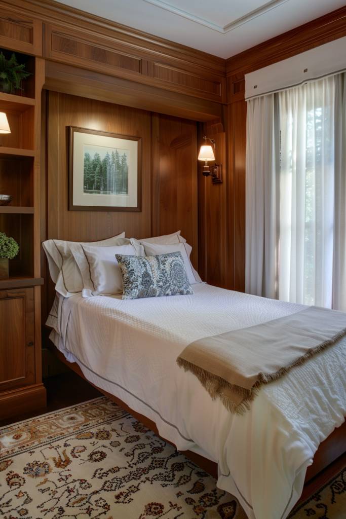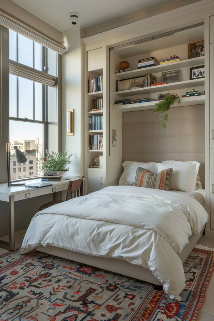 Consider a murphy bed that seamlessly integrates into your walls, freeing up floor space during the day. A nightstand with shelves or a corner desk can also offer essential functionality without crowding the room.