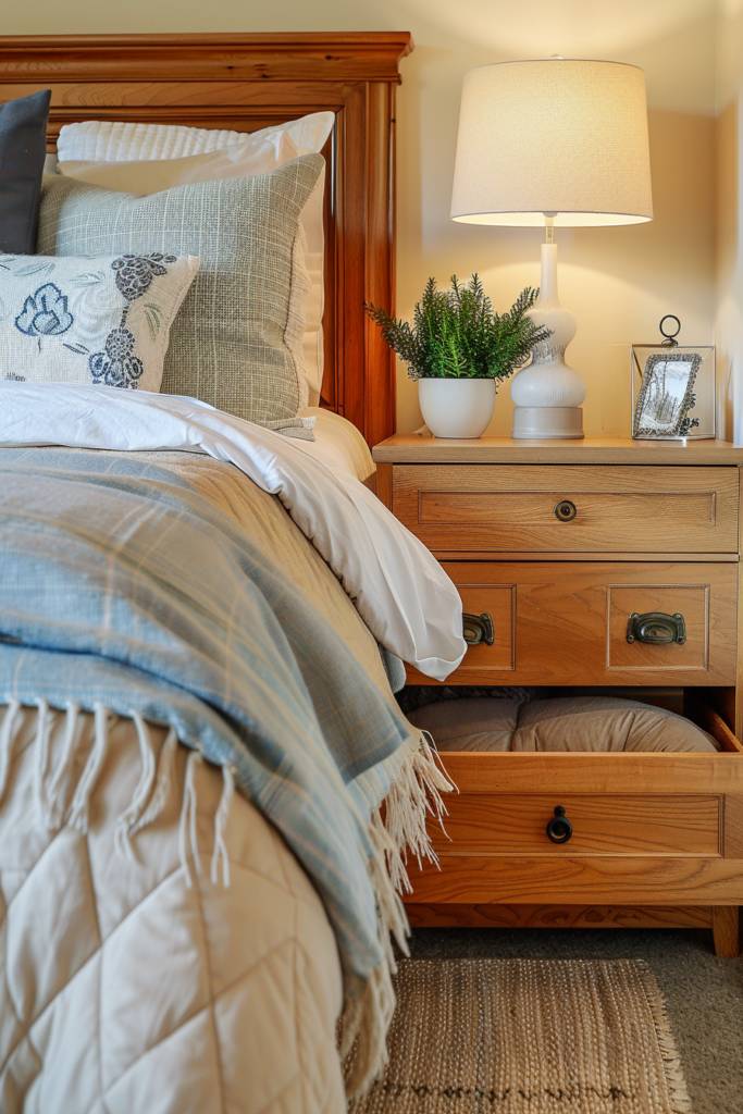 If you prefer a more stylish approach, opt for a bed frame with built-in drawers. They offer functionality without sacrificing aesthetics. For a budget-friendly option, simply use storage boxes that fit snugly under your bed, keeping your items organized and out of sight.