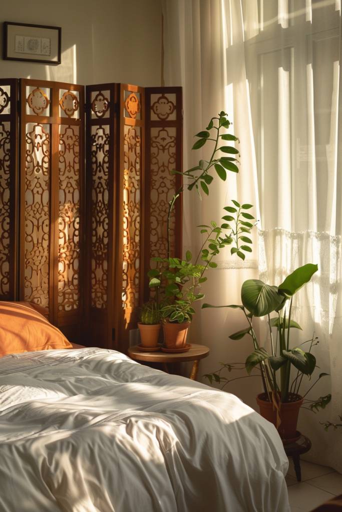 Modular furniture arrangements can create a more open and flexible atmosphere, but sometimes you need a little separation for privacy. Adding a folding screen is a simple yet stylish solution to carve out distinct areas in your small bedroom. Whether you want to create a cozy reading nook or shield your sleeping space from view, a folding screen can do just that without consuming precious square footage.