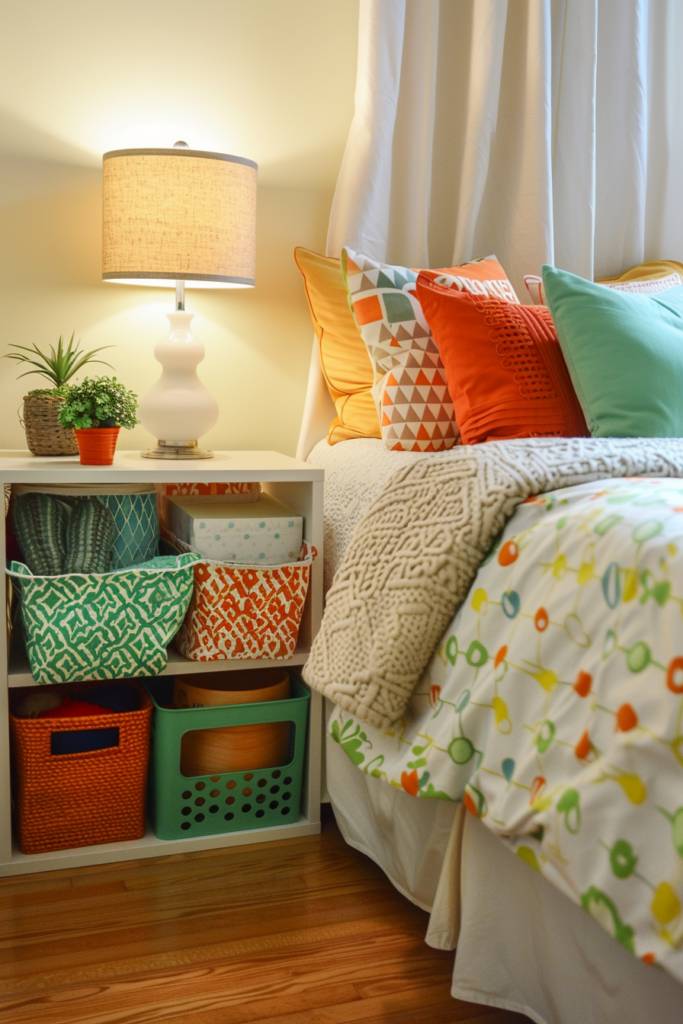 Decorative storage bins can transform clutter into a stylish statement in your small bedroom. These versatile containers come in a variety of materials, colors, and patterns, allowing you to express your personal style while keeping your space organized. Consider placing woven baskets under your bed or on shelves—this maximizes space and makes items easily accessible.
