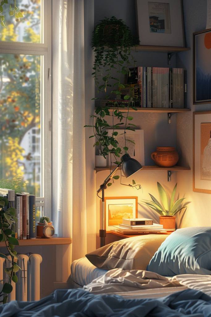 Incorporating a cozy reading nook into your small bedroom can be a delightful way to maximize space while creating a personal retreat. Start by finding a corner that gets natural light; it’ll instantly make your nook inviting. A comfy chair or a plush floor cushion can serve as your perfect seat. Consider adding a side table for your favorite books and a warm cup of tea.