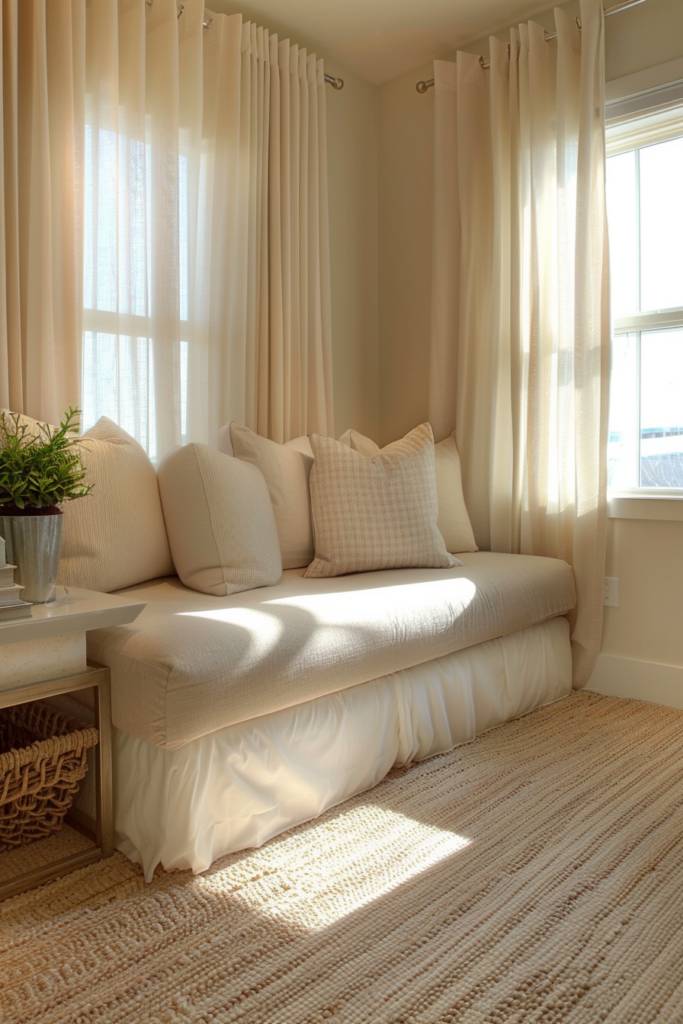 When choosing a daybed, consider one with built-in storage underneath, allowing you to tuck away blankets or seasonal clothing. This keeps your room tidy and clutter-free. Placement is key—position it against a wall or in a corner to create an inviting nook.