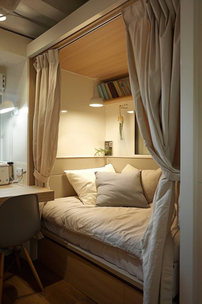 For creating distinct areas within a small bedroom, using curtains can be a game-changer. Instead of solid walls, lightweight curtains provide a flexible solution to define your sleeping area, workspace, or even a cozy reading nook. Choose vibrant patterns or soothing colors that match your decor, and you’ll not only add style but also functionality.