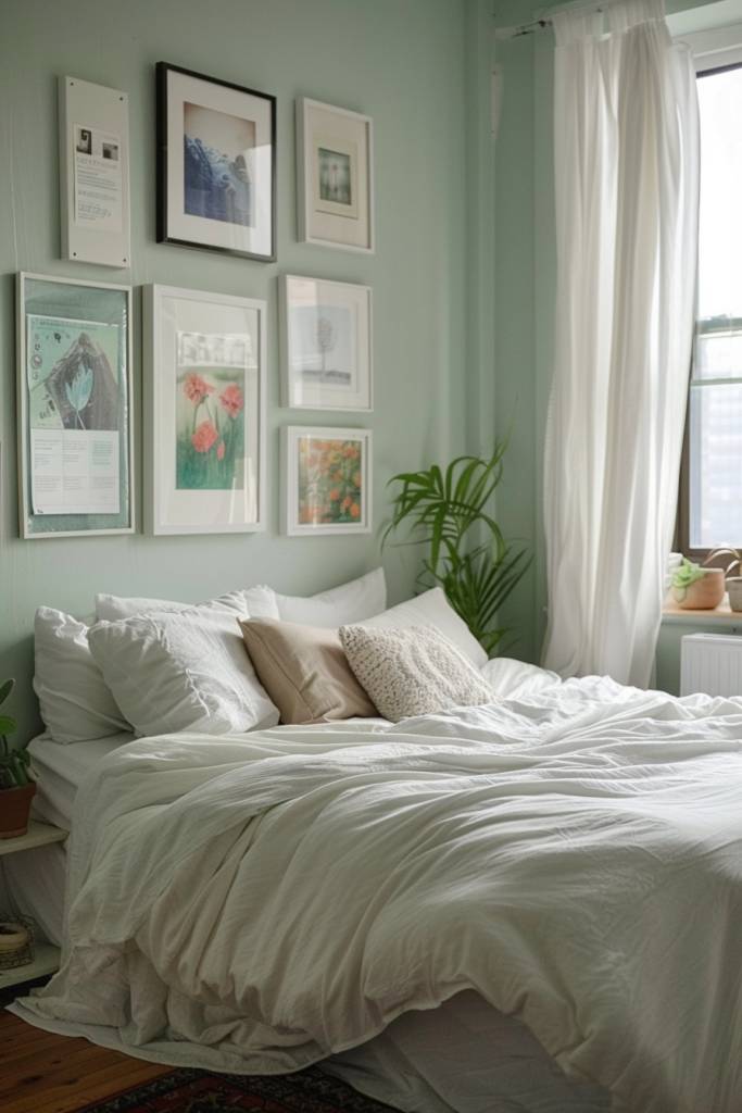 A gallery wall can truly elevate the vibe of your small bedroom, turning blank walls into a stunning focal point. Start by gathering a mix of artwork, photographs, and personal mementos that resonate with you. Choose a variety of frame styles and sizes to create visual interest. Lay everything out on the floor first to find the perfect arrangement before committing to the wall.