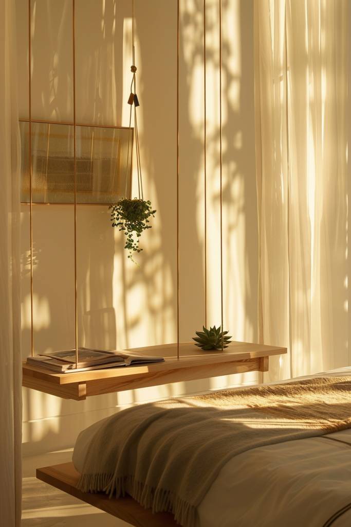 Hanging floating nightstands can completely transform the look and feel of your small bedroom. They’re not just stylish; they also save valuable floor space, giving your room a more open and airy vibe. By mounting them on the wall, you create an illusion of more space, which is essential in a compact area.