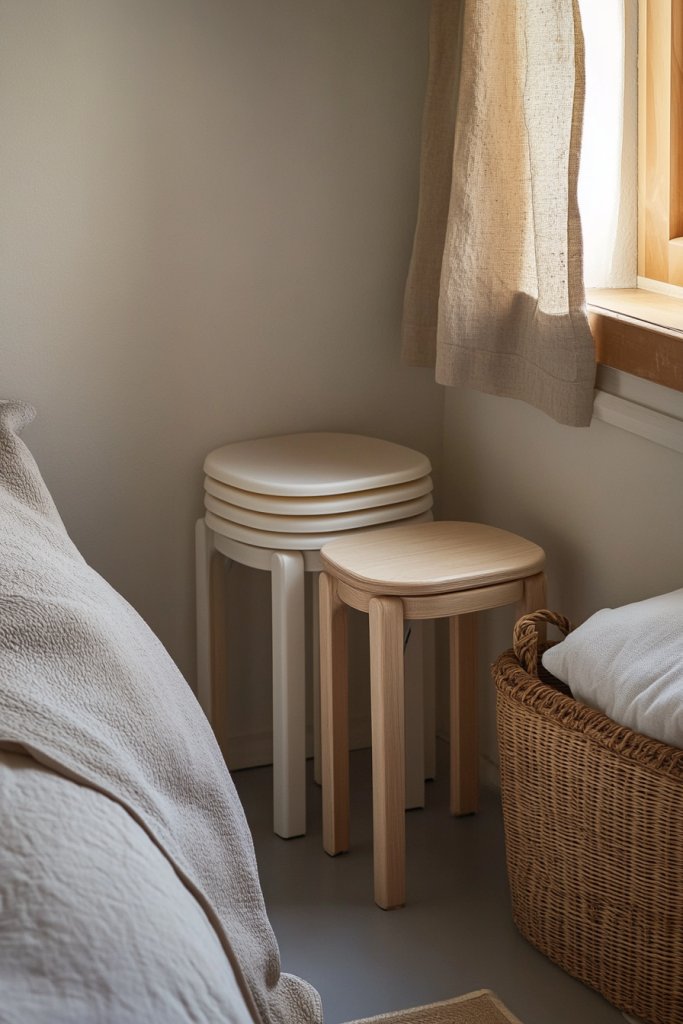 Tiny bedrooms often lack space for traditional nightstands, leaving your bed looking lonely and your essentials hard to reach. Cluttered surfaces or makeshift tables make the room feel disorganized. Compact, stackable nightstands offer a versatile and space-efficient solution that keeps everything within arm’s reach.