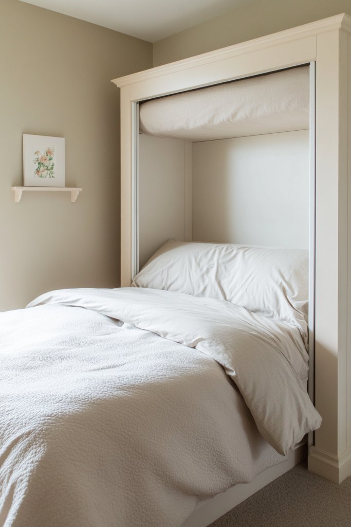 Choose from various styles—modern with clean lines, vintage-inspired, or minimalist. Add a fold-down desk or small shelving nearby to maximize functionality. For aesthetic appeal, incorporate a decorative wall panel or artwork that can be revealed when the bed is folded away. Seasonal bedding can be stored in drawers or baskets nearby.